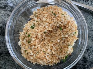 6. Substitution for Panko, use any brand regular bread crumbs. You may need to toast them a little longer in the skillet