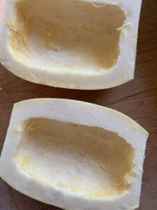 Spaghetti squash, often hailed as nature’s pasta, (is technically a fruit) that transforms into a delicious, low-carb alternative to traditional pasta dishes. Its unique, stringy texture, resembling thin strands of spaghetti, lends itself beautifully to a variety of culinary creations. With a mild, slightly sweet flavor, spaghetti squash acts as a blank canvas for a multitude of flavors, making it an incredibly versatile ingredient. Whether roasted to perfection, tossed with savory sauces, or paired with a medley of vibrant vegetables, spaghetti squash offers a nutritious and satisfying base for a wide range of dishes, providing a guilt-free way to enjoy the comforting essence of pasta while embracing a healthier approach to dining.