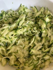 You don’t want soggy fritters, so squeeze-squeeze-squeeze! You will be amazed how much water is in those zucchinis!