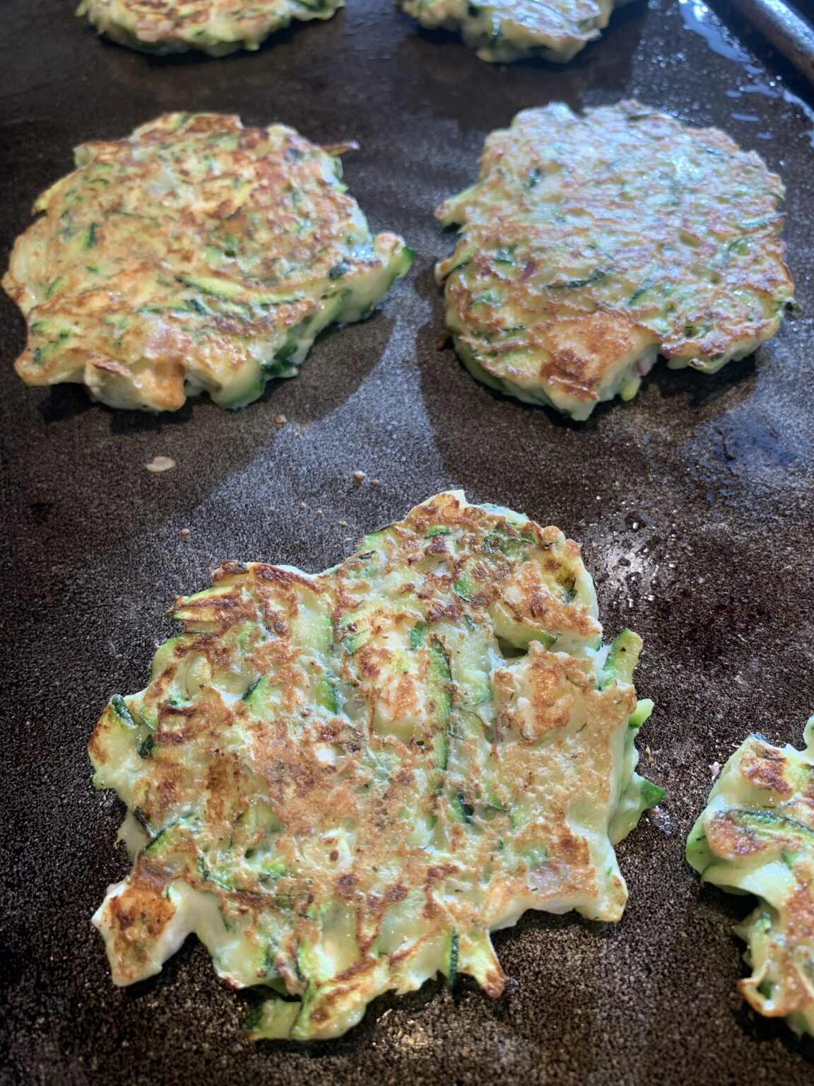 - Repeat with remaining zucchini mixture, adding a small amount of oil between batches as needed and letting it heat until it shimmers.